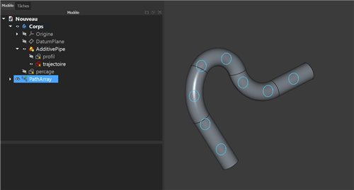 A ce stade, nous avons un corps représentant le tuyau, et un PathArray.