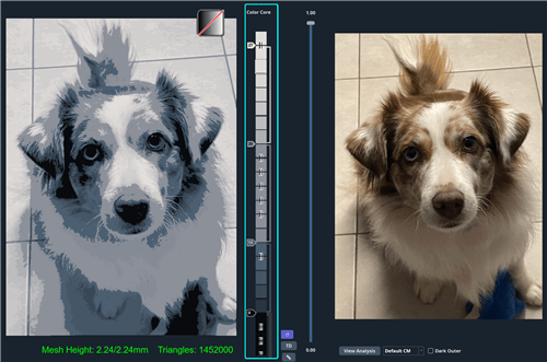 Certains paramètres de HueForge vont nous permettre d’améliorer beaucoup cette image : « Base Layer », « Base Thickness », « Blend Depth » et « Layer Height ».